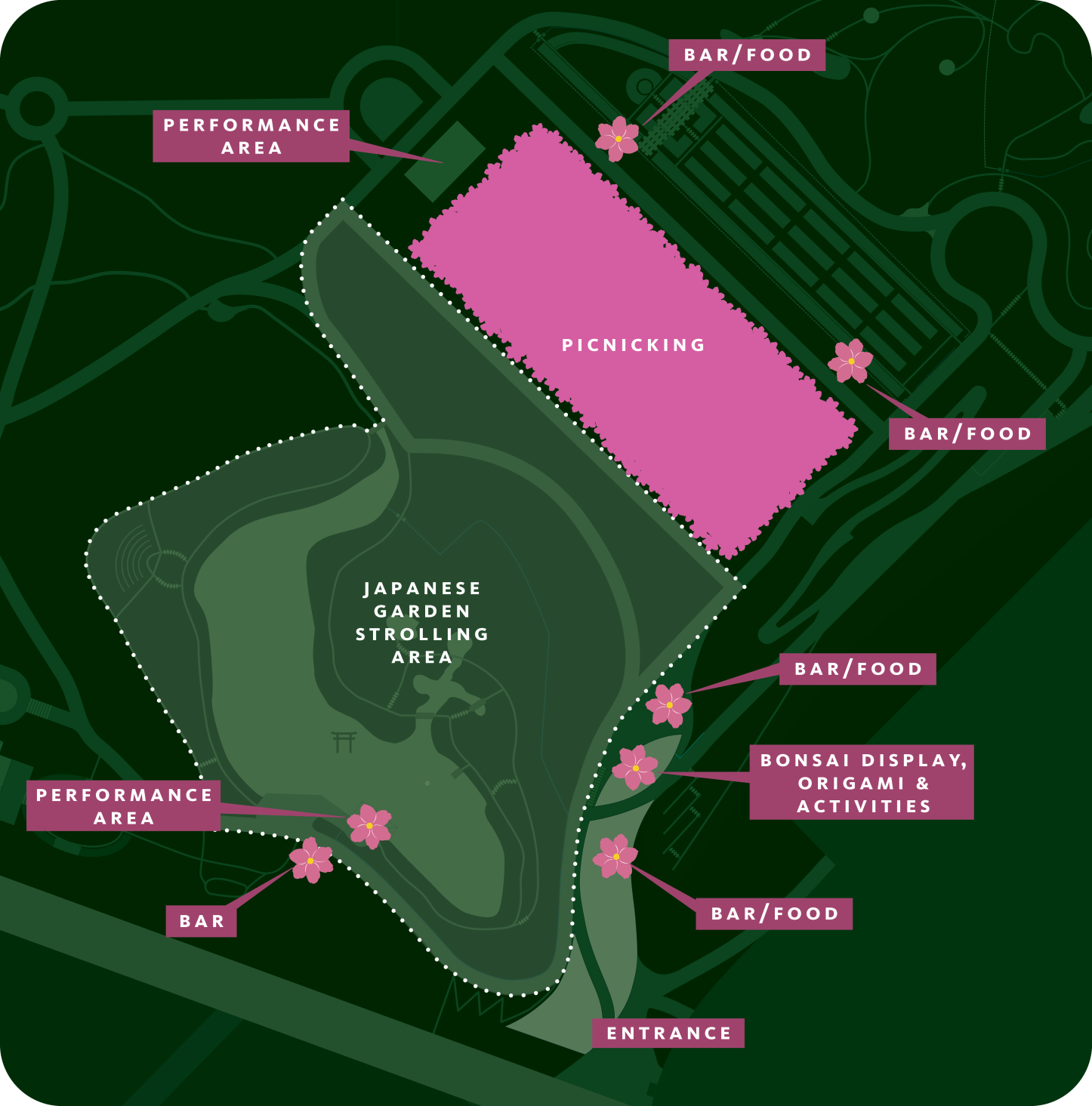 Enjoy magical access to the Garden’s famous Kanzan trees! Find a spot on Cherry Esplanade to enjoy the cherry blossoms, lit up for maximum effect, and savor the spring vibe with family and friends. Stroll in the Japanese Hill-and-Pond Garden and along Cherry Walk, try your hand at origami and other Japanese crafts, view a curated display of bonsai, and enjoy live performances and specialty food and drinks. Bring a blanket and picnic under the cherry blossoms! Practice the Japanese art of folding paper. For visitors of every skill level. Atrium View a curated selection of bonsai specimens from the Garden’s famous collection. Atrium Purchase treats from a special menu presented in collaboration with Japan Village and Saiko Sushi and picnic under the cherry blossoms. Outside food not permitted.